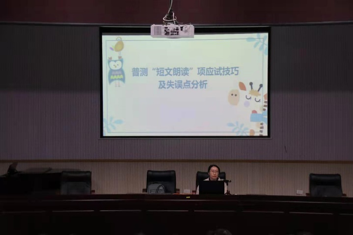 2021年3月23日晚,阶梯教室内开展了一次由苏漪老师对高二年级学生普通话测试方面的集体指导课程。
