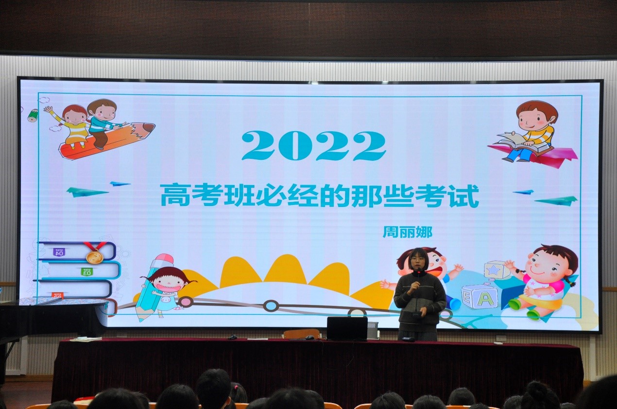 2022年11月16日晚,我校周丽娜老师在我校学术报告厅作题为《高考班必经的那些考试》讲座