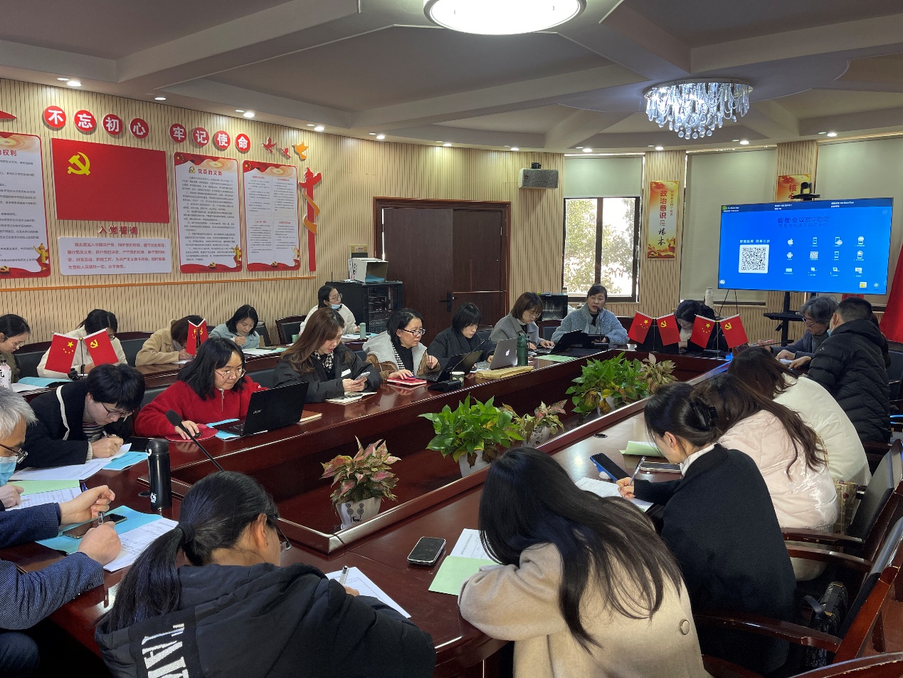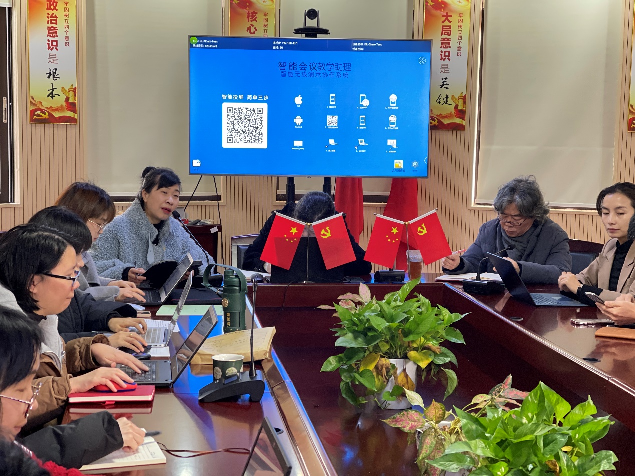 教科室主任戴若琪布置教科研相关工作,具体介绍了校本研训、市级相关赛事、优秀教研组评比及教学团队工作四方面内容。教科室副主任周小璇对教学常规工作进行了补充。信息中心陈仕克老师则对信息技术2.0培训相关内容进行了解读与强调。