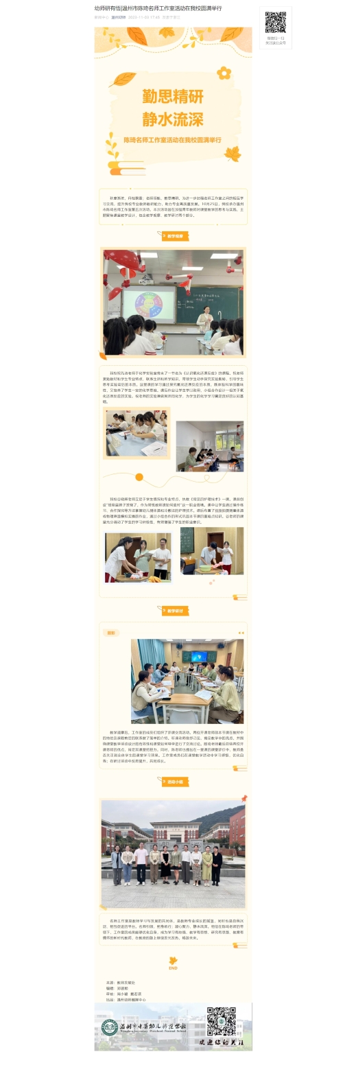 对外研修示范—温州市陈琦名师工作室活动在我校圆满举行