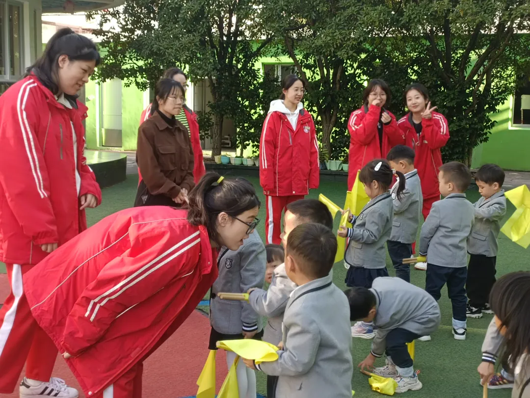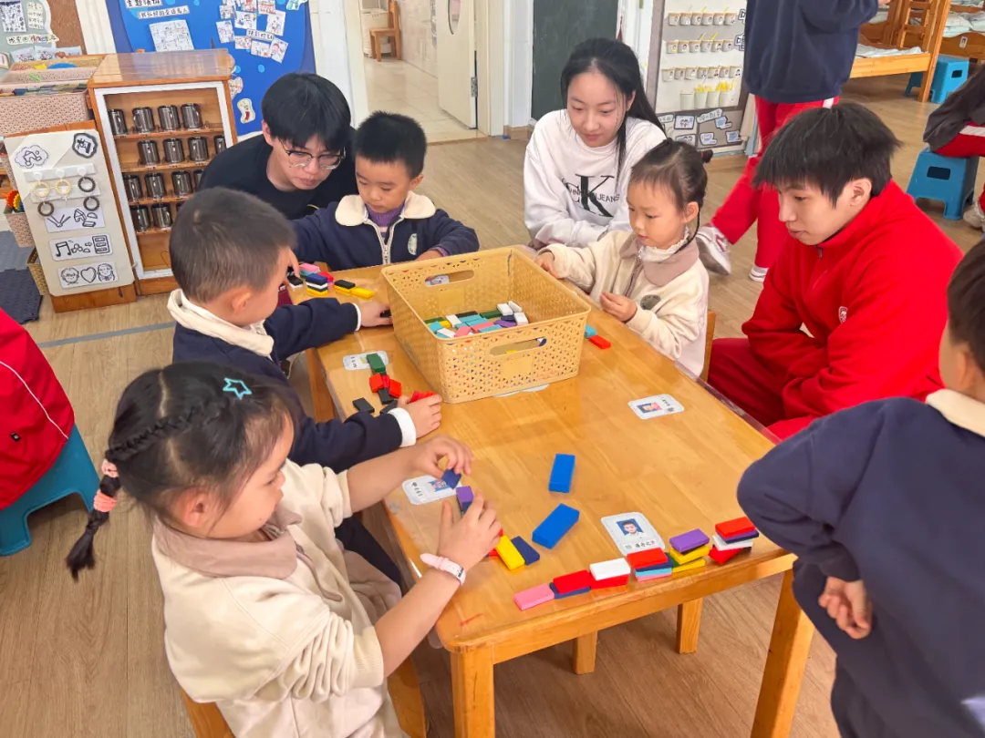 “客人老师们好!”幼儿们挥动着小手,热情地欢迎“客人老师们”的到来。同学们的心也都瞬间被融化了,温柔地和幼儿们做自我介绍。在随班观摩的过程中,同学们认真地观摩、记录,积极地融入到课堂中,用爱心和耐心温暖着每一位幼儿。