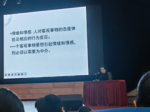 诗歌鉴赏环节将讲座推向高潮。陈姿老师引导学生剖析诗歌传递的情感,依据捕捉情感的能力划分 “功力等级”。这一互动不仅让学生认识到不同人对同篇文字的情绪感受存在差异,还深入讲解了情绪和情感的产生机制,点明客观事物、个人需求与认知对情绪的影响。