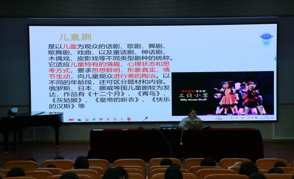 讲座伊始,陈老师以一段充满童趣的经典儿童剧剧本段引入主题,“儿童剧不是简单的‘小儿科’,它需要创作者用成人的智慧架构故事,用孩子的视角感知世界。”陈老师从儿童剧的要素, 儿童剧的定义和作用结合,儿童剧的标准三个方面出发,结合《绿野仙踪》《小王子》等经典剧目,深入浅出地剖析了儿童剧在角色塑造、情节设计、矛盾冲突设置上的独特之处,又展示了小说和剧本的差别。