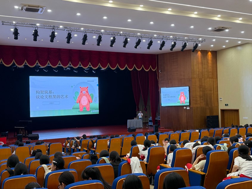 讲座伊始,俞老师以一段引人入胜的开场白迅速吸引了学生们的注意力。她强调,议论文写作如同构建一座大厦,稳固的框架是成功的关键。随后,俞老师详细讲解了审题、立意、结构构建等议论文写作的核心要素。